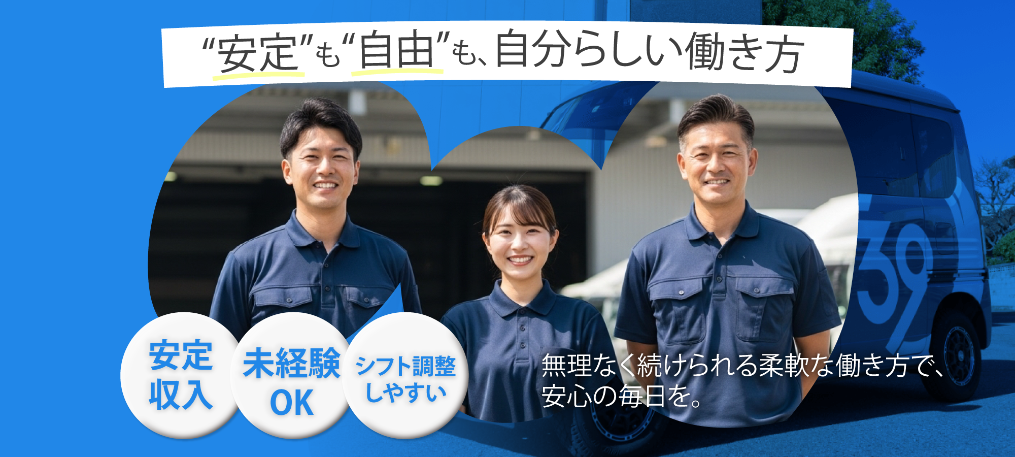 現場スタッフ、ドライバー、管理者…すべての人が“チーム”として支え合う社風が当社の魅力。経験よりも「人柄」と「誠実さ」を大切にしており、未経験からキャリアを築いた社員が多数在籍しています。