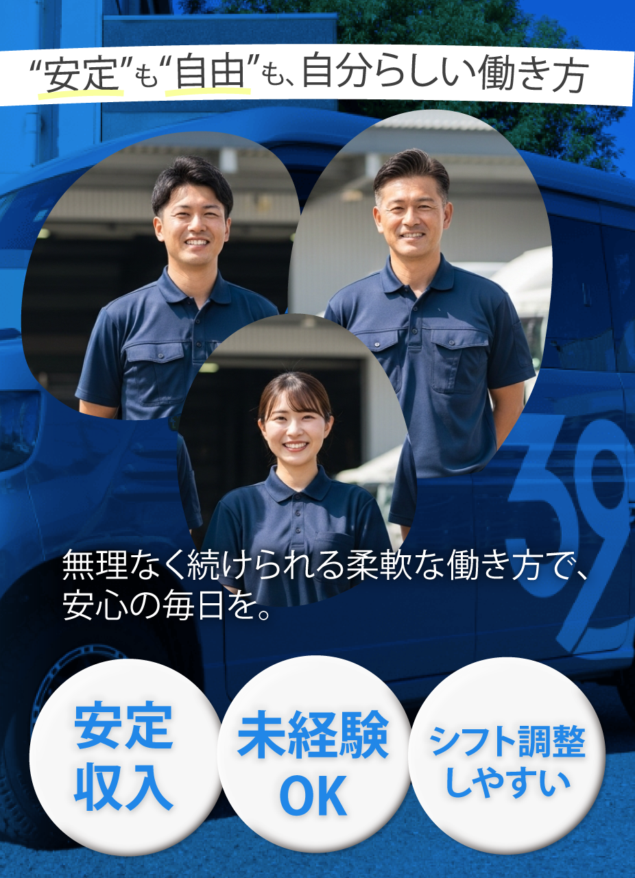 ドライバーさんは一人で運べる荷物が中心で、再配達もほとんどなし。体力的な負担も少なく、ドライバー未経験でも安心して始められます。